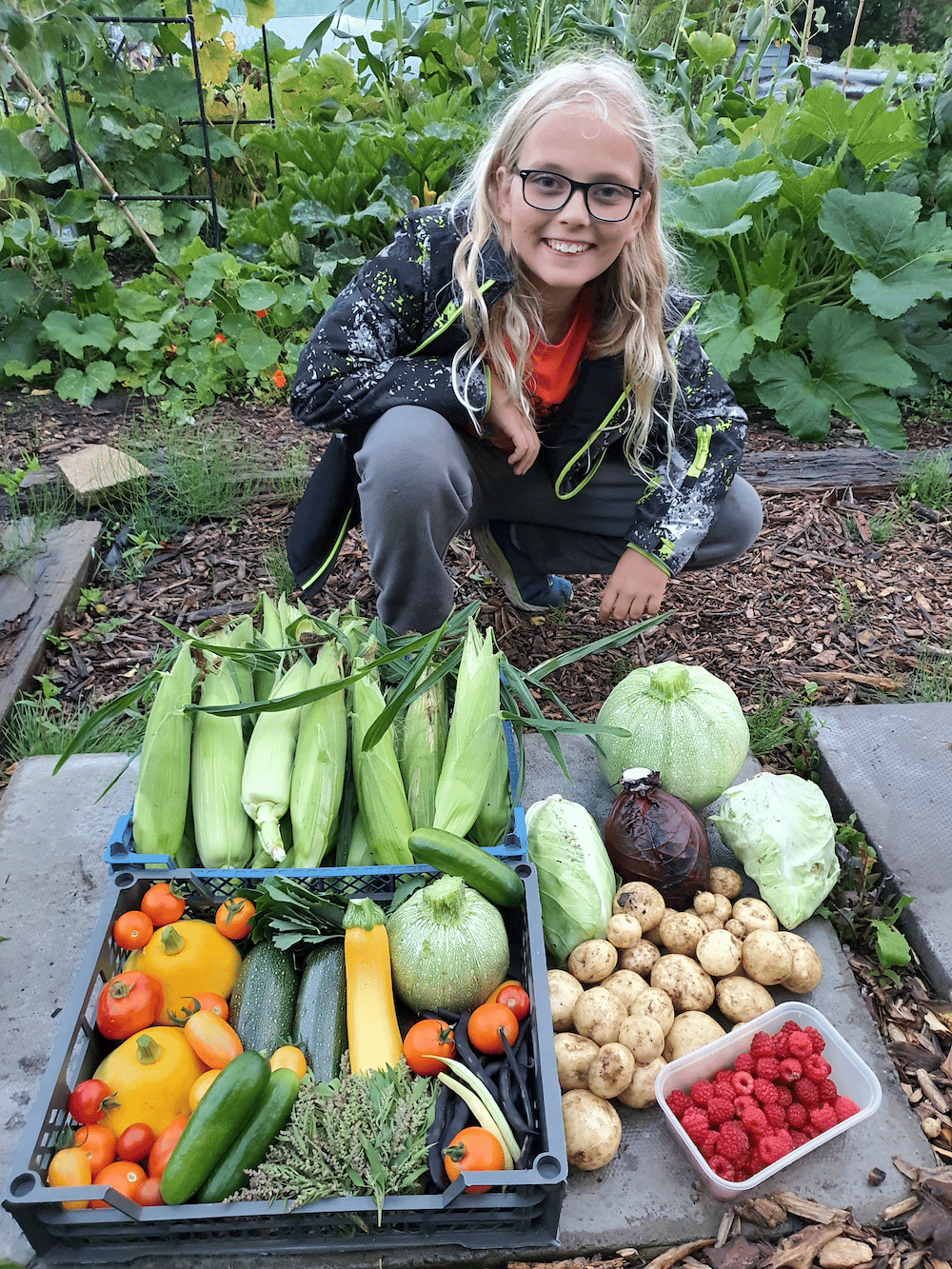 Vikki Baines sent this photo of her son, @samandthesoil, with their best harvest to date from their allotment. Vikki wrote that they had lots more still to come!