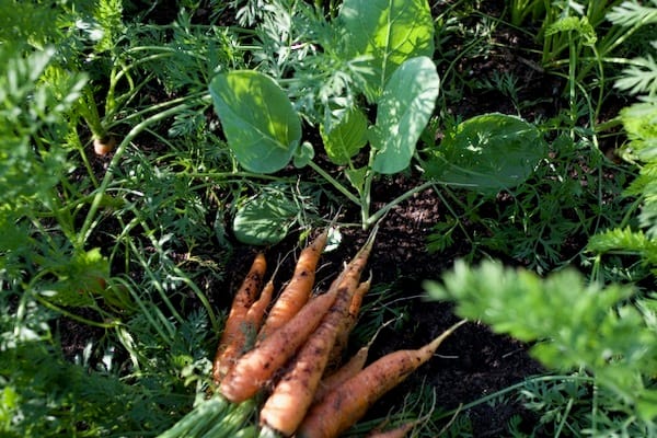 Carrot harvest June 29th from around recently interplanted Brussels sprouts